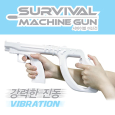 안녕하세요 2010년 8월서바이벌 머신건(SURVIVAL MACHINE GUN)을 선보입니다. 실감나는 건슈팅 게임을 즐기자! 실감나는 건슈팅 액션게임을 위한 필수 아이템! 서바이벌 머신건! 리모트 컨트롤러와 핸드그립을 장착하여 즐기는 건슈팅 액션게임용 건입니다. 진동기능으로 더욱 실감나는 건슈팅 게임을 즐길 수 있습니다. 완벽한 모션 플러스 장착부분! Wii 리모트 컨트롤러와 모션 플러스를 연결하여 사용할 수 있어 더욱 정확하고 자유로운 컨트롤이 가능합니다. ★ 패키지 내용 서바이벌 머신건 1