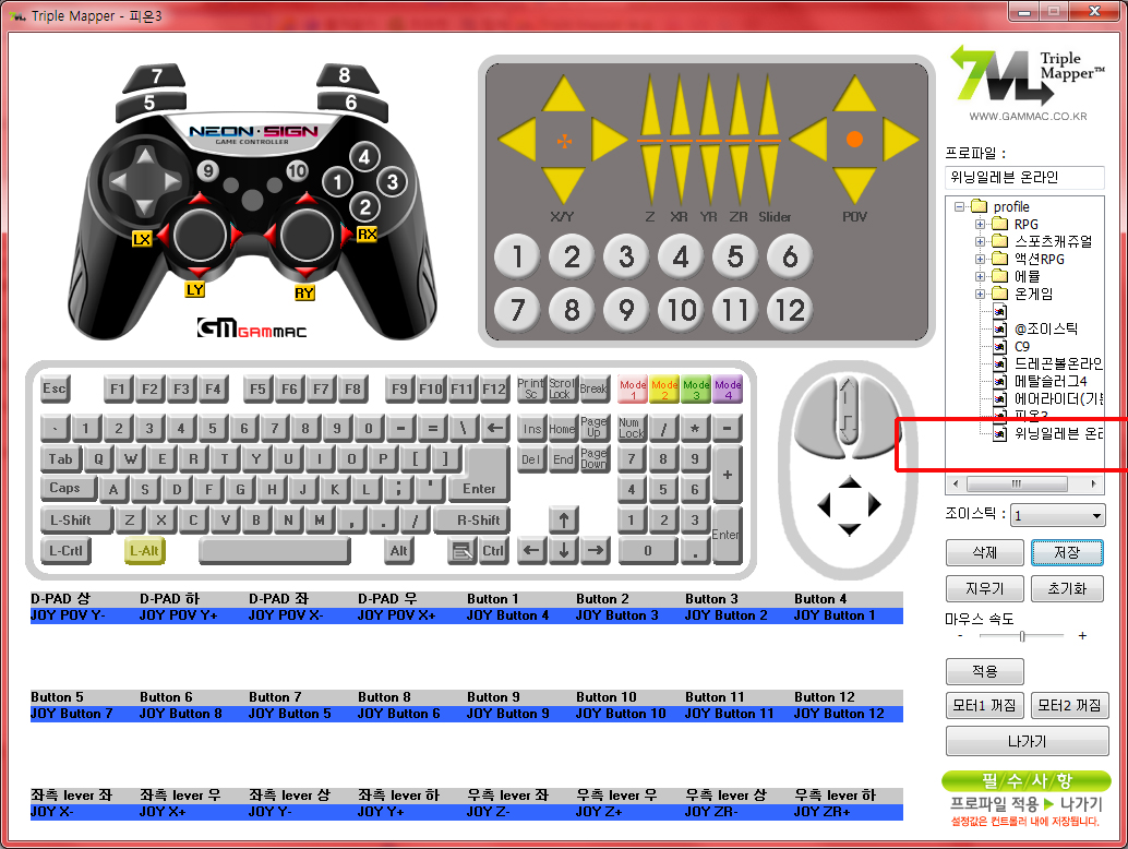 안녕하세요 겜맥입니다. 현제 위닝일레븐 온라인 게임패드설정시 어려움이 있어 트리플맵퍼 설정값을 올려 드립니다.
