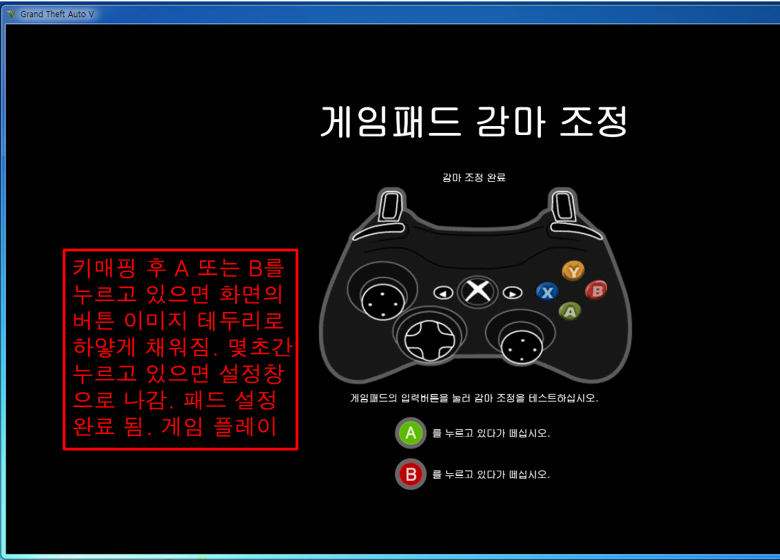 옵션 -> 설정-> 게임패드 -> 게임패드 감마조정 선택합니다.