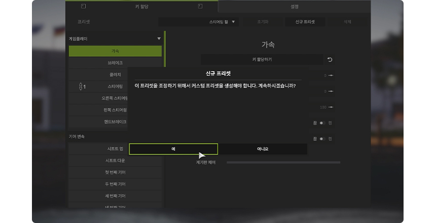 ![]() 게임 실행 > 설정 > 게임플레이 설정 선택