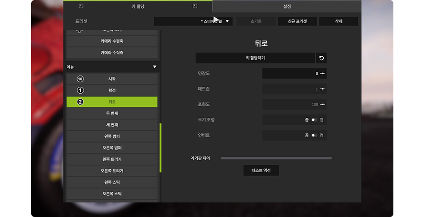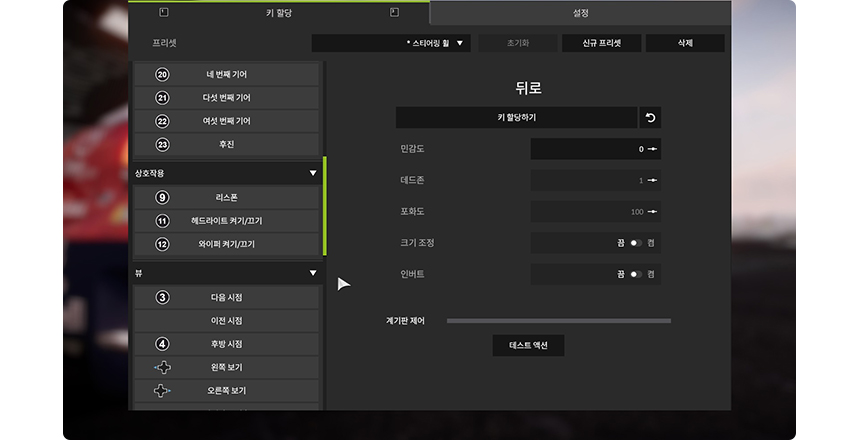 각 기능마다 엘리트 휠을 사용하여 키 할당해 주세요.