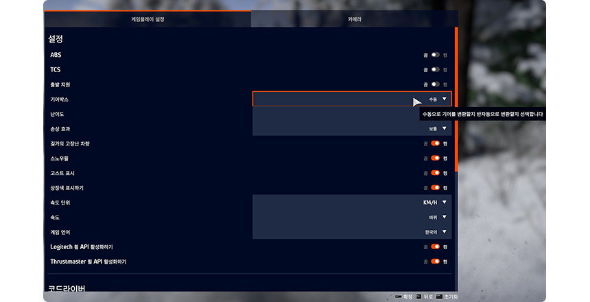 기어 박스를 수동으로 설정해 주세요.