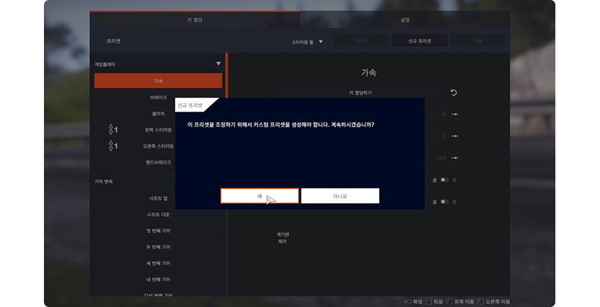 게임 실행 > 설정 > 조작 선택