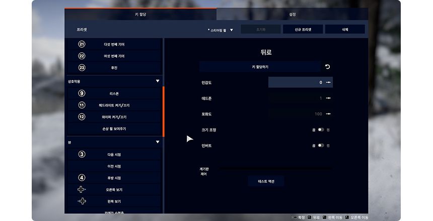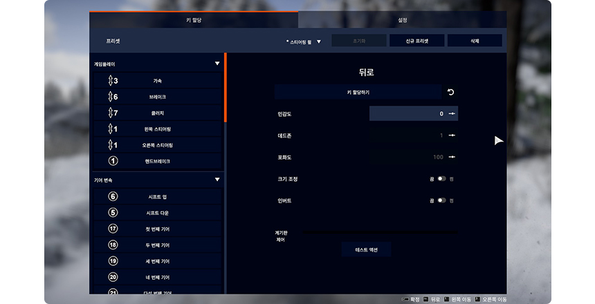 각 기능마다 엘리트 휠을 사용하여 키 할당해 주세요.