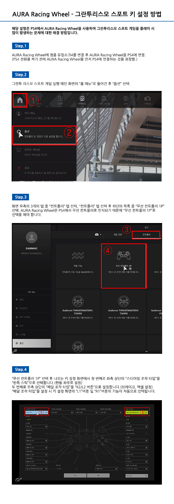 AURA Racing Wheel-그란투리스모 스포트 키 설정 방법