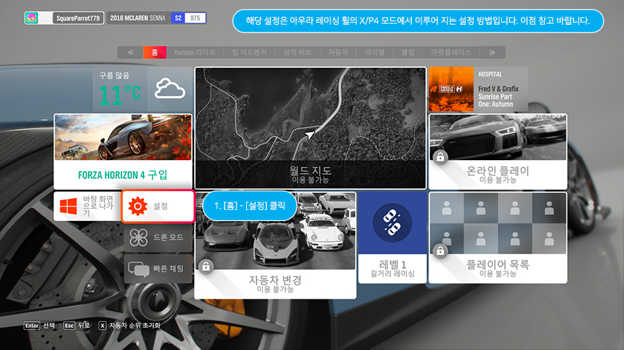 아우라 레이싱휠 - 포르자 호라이즌4 키설정 방법 ※해당 설정은 아우라 레이싱 휠의 X/P4 모드에서 이루어지는 설정 방법입니다. 이점 참고 바랍니다.