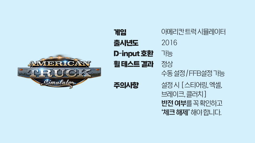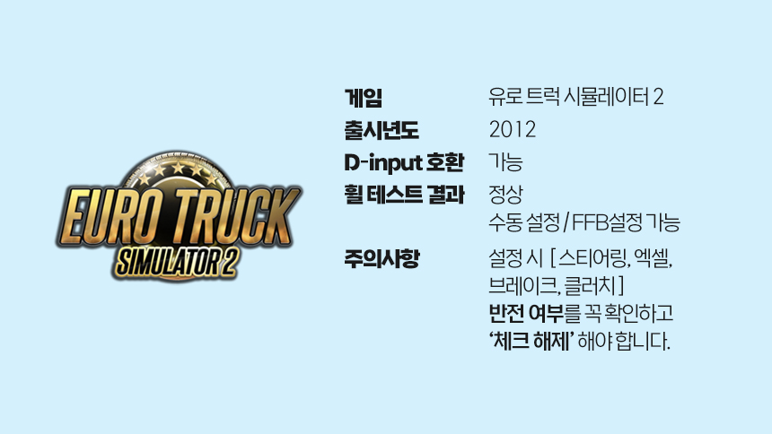 엘리트 레이싱 휠 유로트럭 시뮬레이터 2 & 아메리칸트럭 시뮬레이터 설정방법입니다.