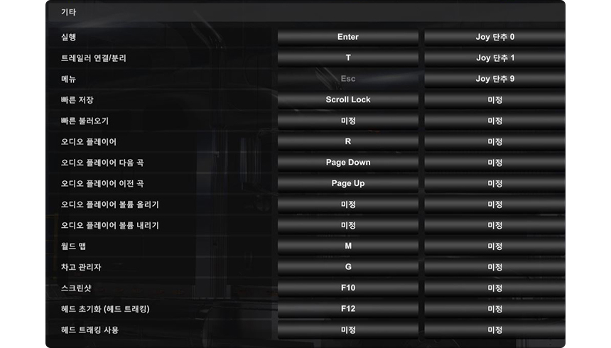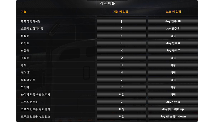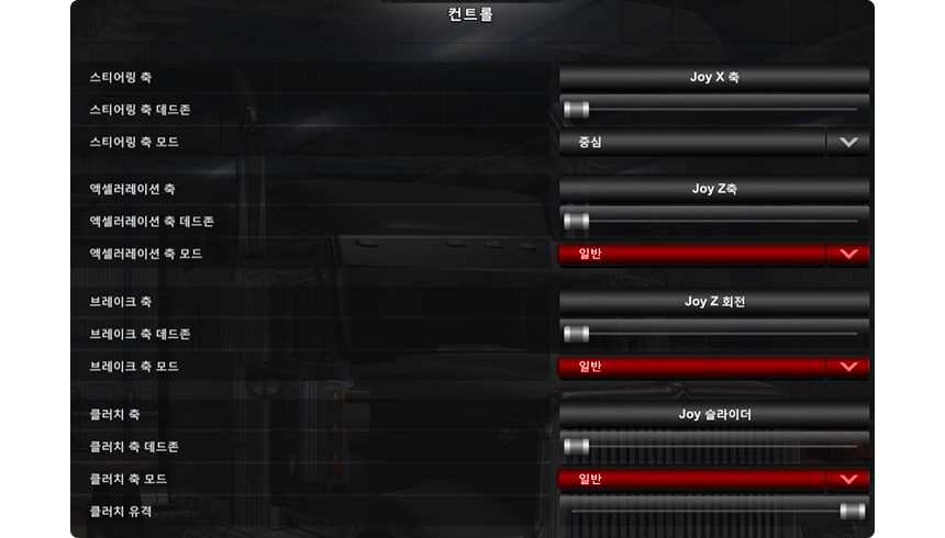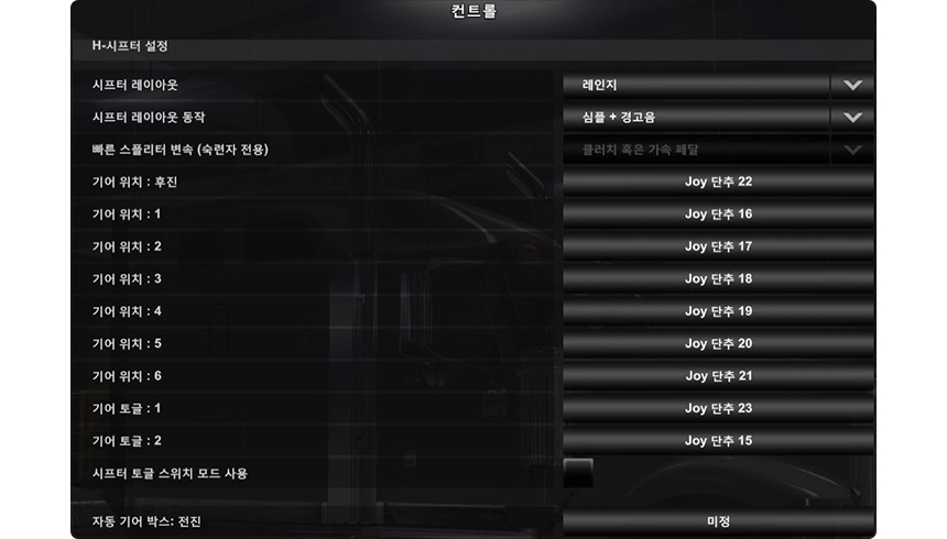 같은 방법으로 엑셀, 브레이크, 스티어링(핸들), 기어올림, 기어내림 등