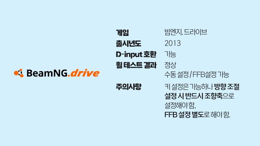 ![]() 즐거운 레이싱 게임의 필수품! 엘리트 레이싱 휠을 빔엔지. 드라이브에서 즐기기 위해서는 다음과 같은 몇 가지 수동 설정이 필요합니다.