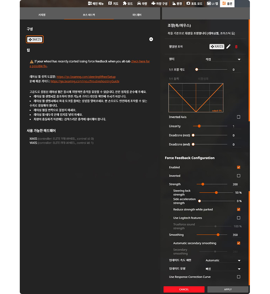 안녕하세요. 겜맥입니다 :) 엘리트 레이싱 휠 빔엔지. 드라이브 설정방법입니다. 차근차근 따라해보세요!
