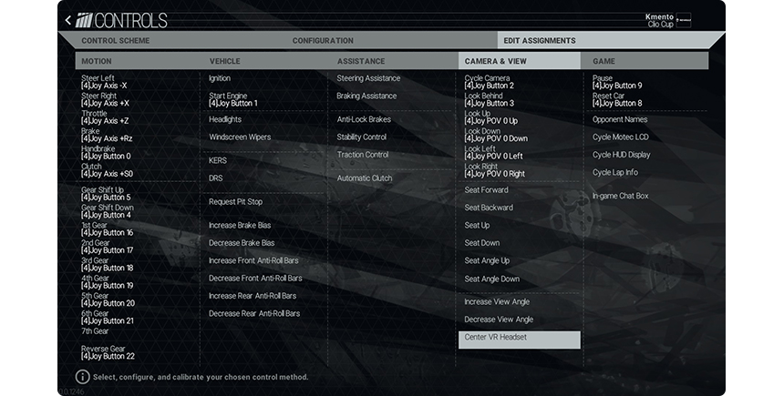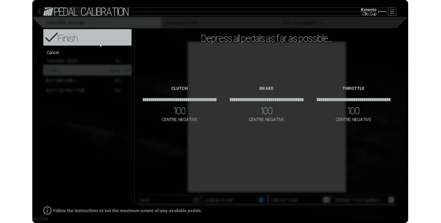화면 하단의 휠, 페달 설정