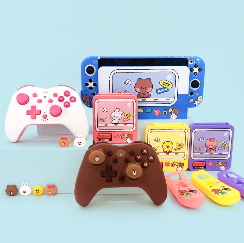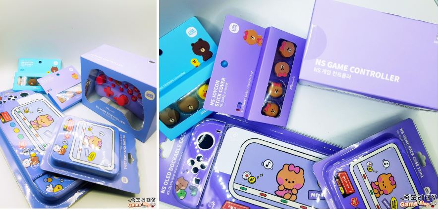 뭔가 대단히 굉장하게도 다양한 아이템들이 풀 세트로 모여있는 본 제품은 겜맥의 라인프렌즈 NINTENDO SWITCH 주변기기로 국내에서는 너무나 높은 인기를 구사하는 캐릭터를 내세워 다양한 제품군을 선보이고 있다. 여성분들 중 LINE FRIENDS를 싫어하시는 분이 계실까 싶은 일종의 치트키라 할까 ㅋㅋ 컨트롤러, 독 케이스, 조이콘 커버, 팩 케이스, 그립 캡까지 할 수 있는 건 다 준비했으니 마음에 드는 부분들만 쏙쏙 사용해도 무방하니 하나씩 살펴보도록 하자.