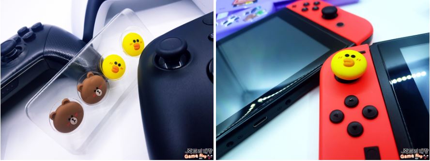 아마 컨트롤러를 사용하는 유저라면 하나씩은 가지고 있을 스틱 커버 역시 귀염 뽀짝 한 라인프렌즈도 있다. 이게....보기만해도 너무 귀여워서 그런가 사용하기 좀 아까운 느낌이 들기도 하지만 아날로그 스틱의 엄지 그립감 및 보호를 원한다면 사용해 보아도 좋을듯한데...... 사실 가격은 라인 제품 중 가장 저렴하지만 아이들이나 여성 사용자들에게는 가장 강력하게 어필할 수 있는 필살기 같은 아이템일 듯.....