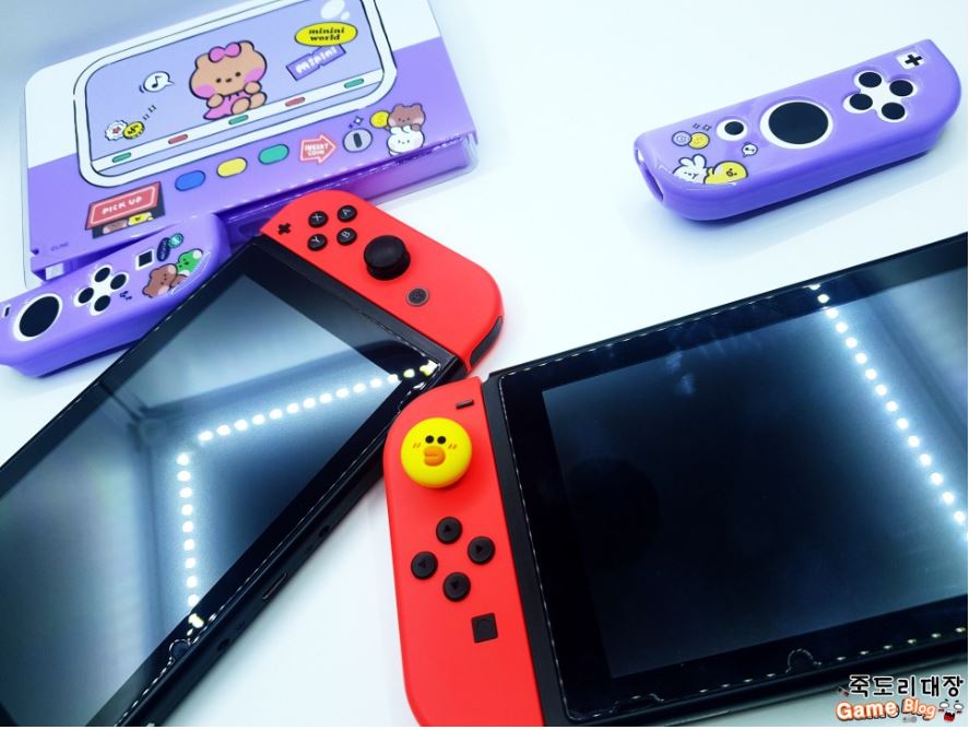ㅋㅋ 여기서 끝이 아니다. 사진의 제품은 팩 케이스와 같은 미니니 초니니 캐릭터로 본체 기기를 안전하게 사용 가능한 프로텍트 케이스 및 조이콘 L / R 충전독 전면 케이스를 포함한 제품으로 스크래치 보호를 위한 고급 소재 사용으로 보다 기기를 안전하게 이용할 수 있다. 다만 스위치 OLED 전용이라 기존 구형에서는 살짝 프로텍트 케이스가 들뜸이 있기에 참고하길 바라며, 그럼에도 사용해 본 전체적인 모습은.....진짜 귀엽다는거...무슨 설명이 더 필요할까 사진으로 확인!!