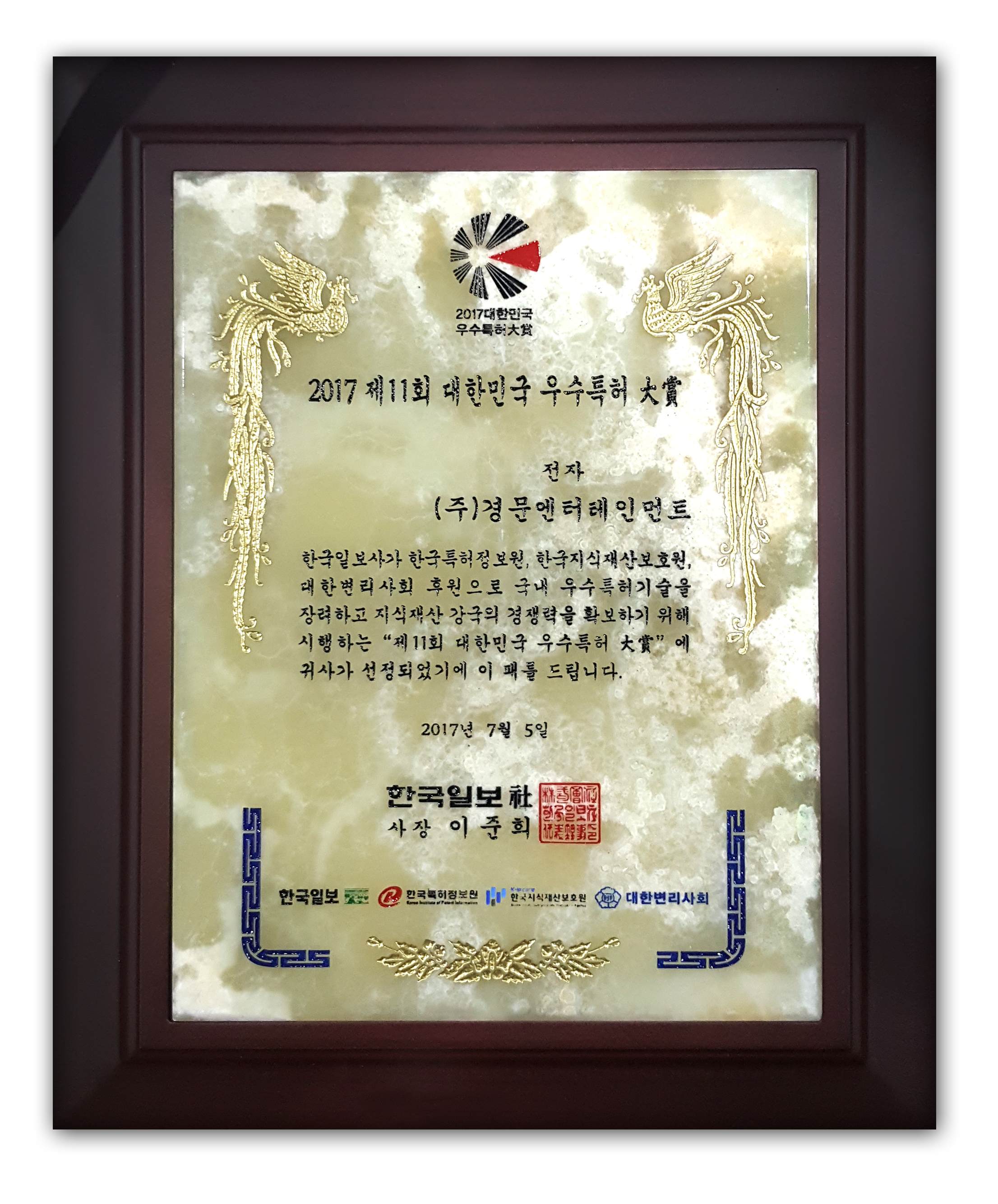 [2017 상반기 대한민국 우수특허대상] 경문엔터테인먼트 |