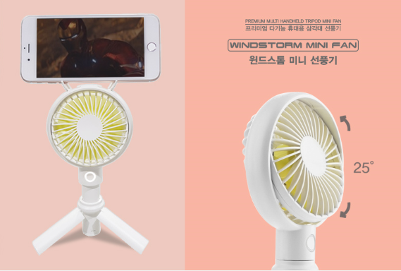 핸디형 및 삼각대 선풍기와 스마트폰을 거치할 수 있게 설계되었습니다.